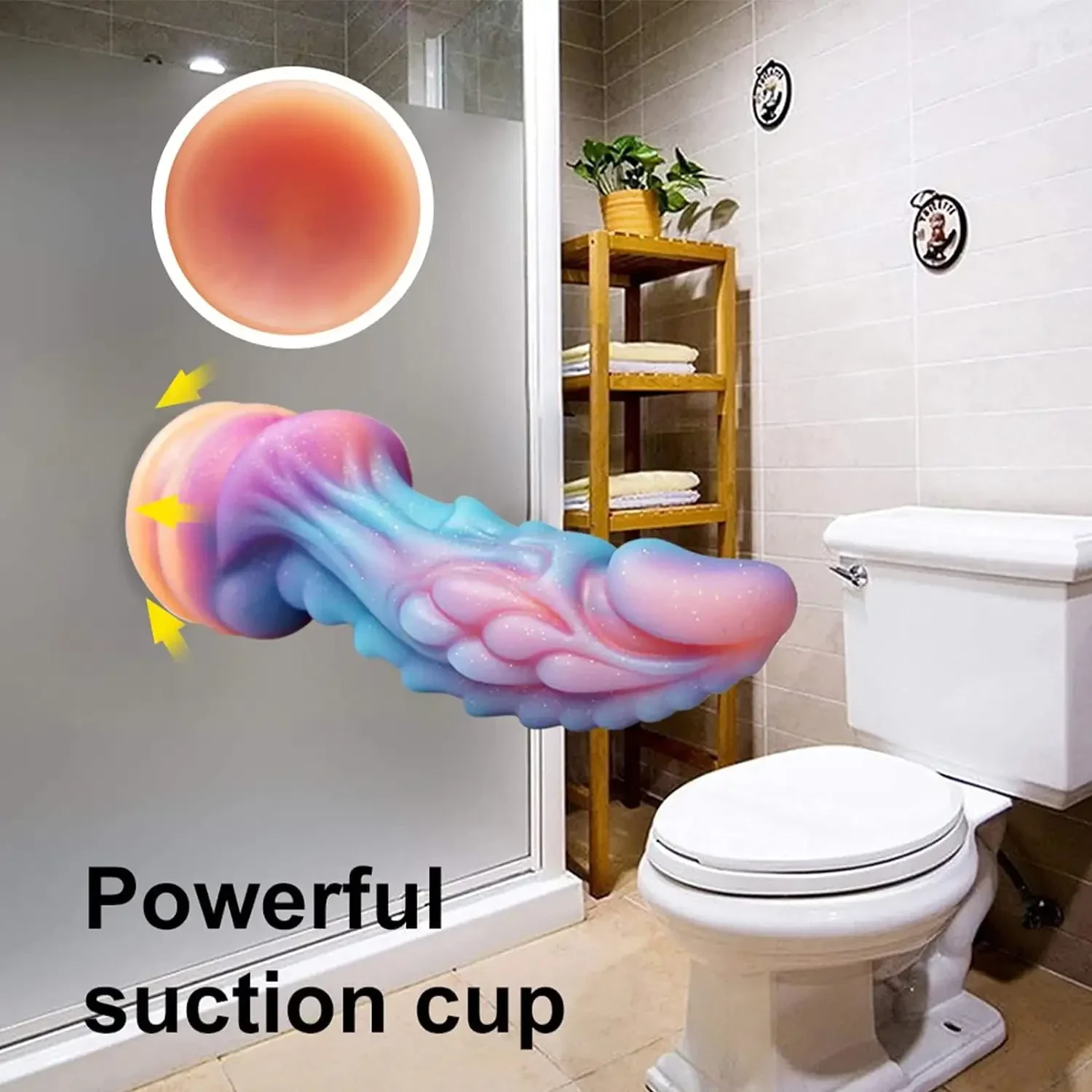 Der Dildo hat eine mäßige Härte, ist geruchslos, wasserfest, hat einen starken Saugnapf, eine konische Spitze zum leichten Einführen, eine glatte Oberfläche und eine besondere Textur für spannende Lusterlebnisse.